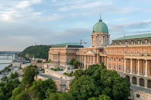 The formal Royal Palace, a large, symmetrical neo-Baroque palace dominates the Buda skyline housing today the National Széchenyi Library and a complex of museums including the Hungarian National Gallery.